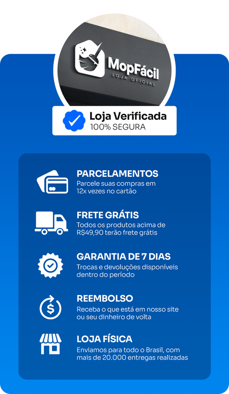 Na compra deste produto, você receberá um brinde exclusivo totalmente grátis! O brinde será 1 pano de microfibra ou 1 suporte para Mop, enviados de forma aleatória, conforme disponibilidade em estoque. Não é necessário selecionar o brinde — ele será incluído automaticamente no envio do pedido.